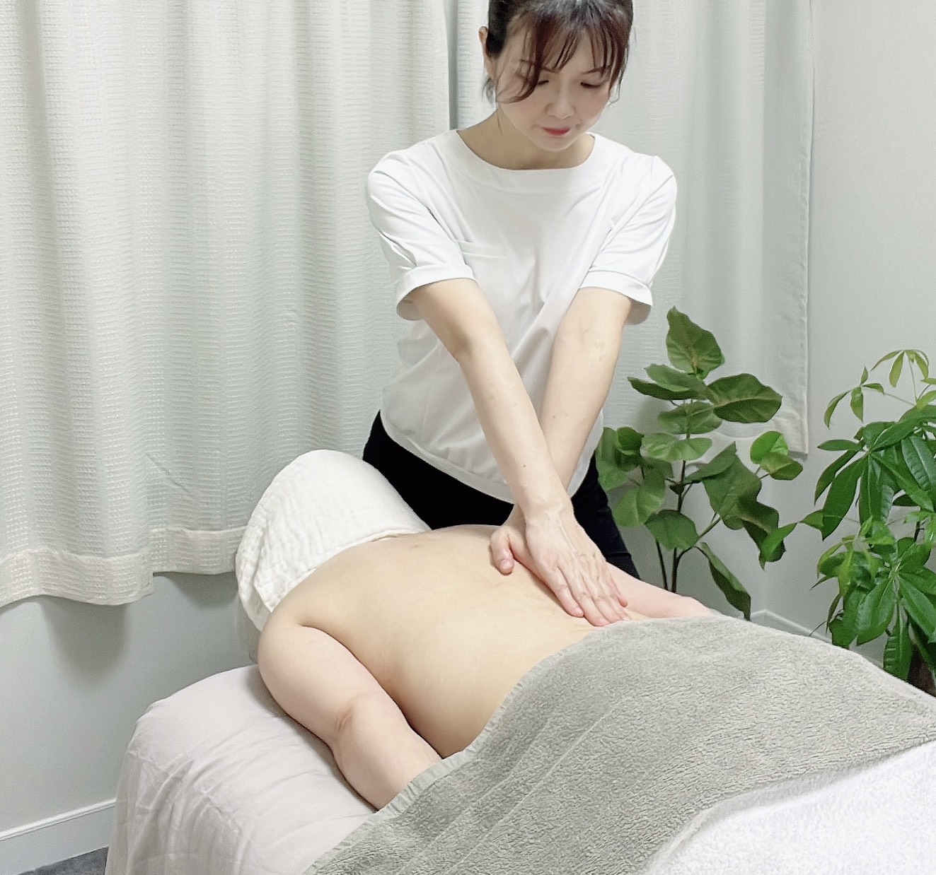 オイルを使いながら体を包み込むようにアプローチし、深層の筋肉やこわばった部分に、やさしく、そして的確に働きかけていきます。